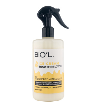 لوسیون بستنی بیسکوئیتی بیول، اسپری بعد از حمام بدون نیاز به شستوشو برای موهای رنگشده و آسیبدیده است. ترکیب روغنهای گیاهی و پروتئینهای هیدرولیزه در این محصول، به بازسازی ساقه، کاهش خشکی و وز و افزایش نرمی و انعطاف کمک میکند. بافت سبک و بیچربی آن روی مو میماند و به خوشفرم شدن موها، بهویژه در موهای فر و مجعد، کمک میکند. عطر خوشایند و بطری اسپریدار، استفاده را سریع و آسان میکند.